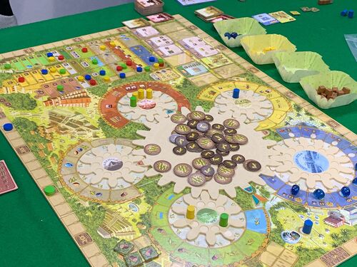 ▼▼週明けのボードゲーム会。朝から夜まで遊んだ。『くだものあつめ』→『カルカソンヌ+拡張:宿屋/大聖堂』→『ドミニオン(第一版)』→『ツォルキン』→『タギロン』という順番だった。 くだものあつめ(初プレイ) ・種を蒔いて果物を買い集める。勝利条件…